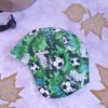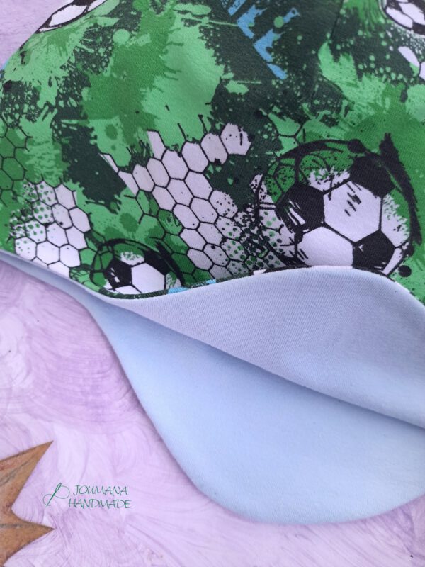 - peppiges grün mit Fußbällen und Schriftzügen in schwarz, weiß, hellblau