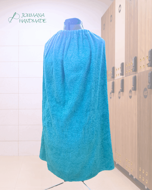 Unter dem Umhang sind die Arme frei, sodass man sich bequem abtrocknen und umziehen kann, ohne neugierige Blicke am Strand oder in der Umkleidekabine. Dank des eingezogenen Gummis am oberen Rand kann er einfach über den Kopf gezogen werden und liegt sicher auf der Schulter auf.
